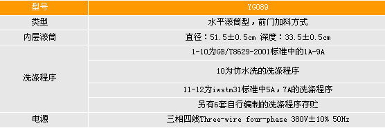 適用標準:GB/T8629-2001, ISO5077/6330-2000, IWSTM31, BS4923, EN25077/26330, JISL1909, FZ/T70009等測試方法。