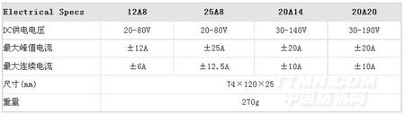 注:可驅動無刷DC伺服電機在電流環、電流環、速度環及位置環下工作,且具有四象限再生電功能,電機需帶霍爾傳感器,速度反饋可以來自霍爾傳感器,測試發電機或編碼器的信號。