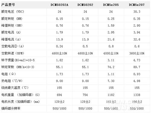 DCM直流伺服電機(jī)電氣參數(shù)