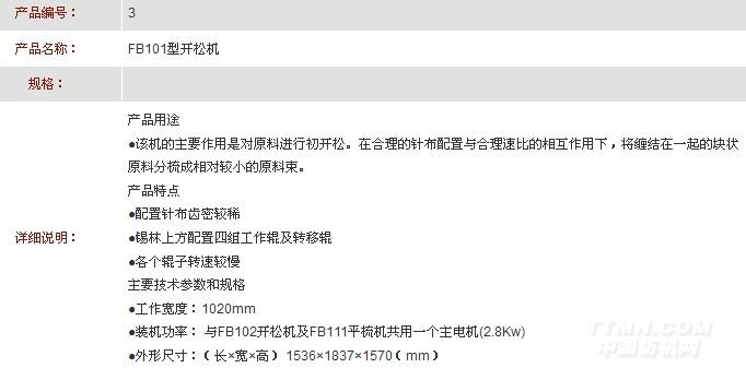 您所在的位置:紡機網 > 產品庫 > FB101型開松機