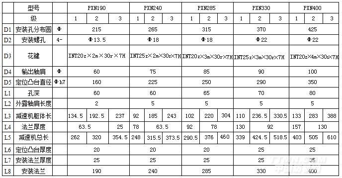 說明:花鍵孔輸出減速機,技術參數可參照對應軸輸出減速機參數