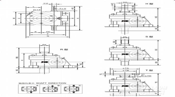 蝸輪絲桿減速機JRSS-R系列詳細圖紙: