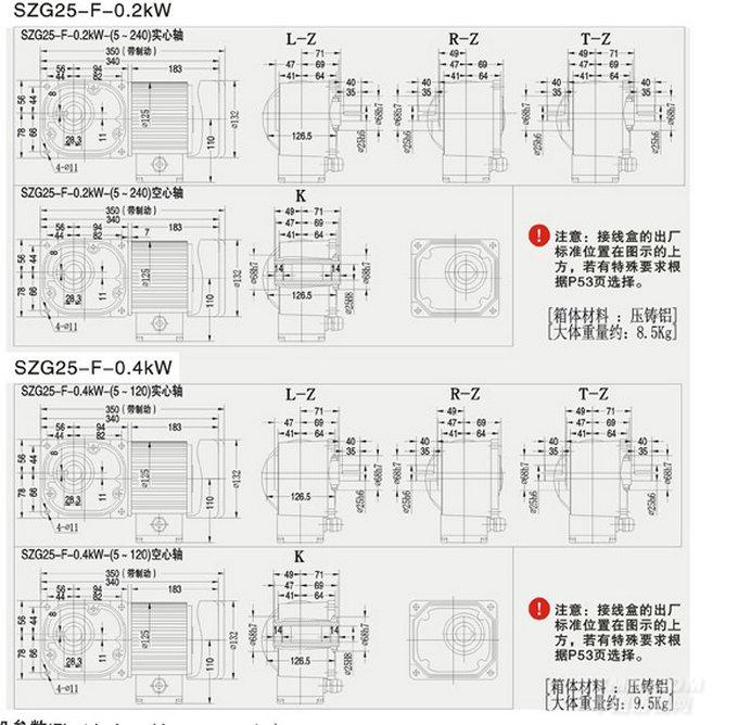 SZG-F直交軸中型25框減速機圖紙及詳細參數(shù):