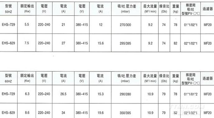 EHS729/829 離心式高壓鼓風(fēng)機(jī)特點(diǎn):壓力高 風(fēng)量大 無油氣 免保養(yǎng) 壽命長(zhǎng) 低震動(dòng),高風(fēng)壓 體積小,重量輕 低噪音,新設(shè)計(jì)規(guī)格:三相交流電50HZ/60HZ 最大風(fēng)量:5.2立方米/6.2立方米功率:2200W/2600W 電壓:200-240V/220-240V 346-415V/380-480V 電流:6.7A/10.6A 5.6A/6.1A
