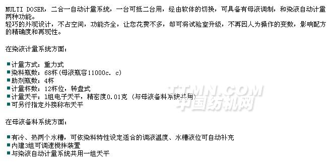 您所在的位置:紡機網(wǎng) > 產(chǎn)品庫 > 染液自動計量系統(tǒng) MULTI