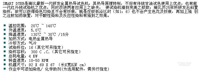 您所在的位置:紡機網 > 產品庫 > 瑞比智能型試色機