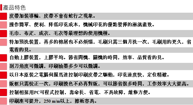 您所在的位置:紡機網 > 產品庫 > BP-300平板式自動網版印花機