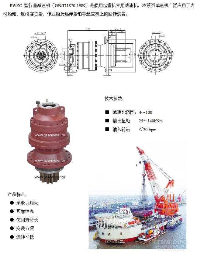 應用領域:本系列減速機廣泛應用于內河船舶、近海客貨船、作業船及遠洋船舶等起重機上的回轉裝置。
