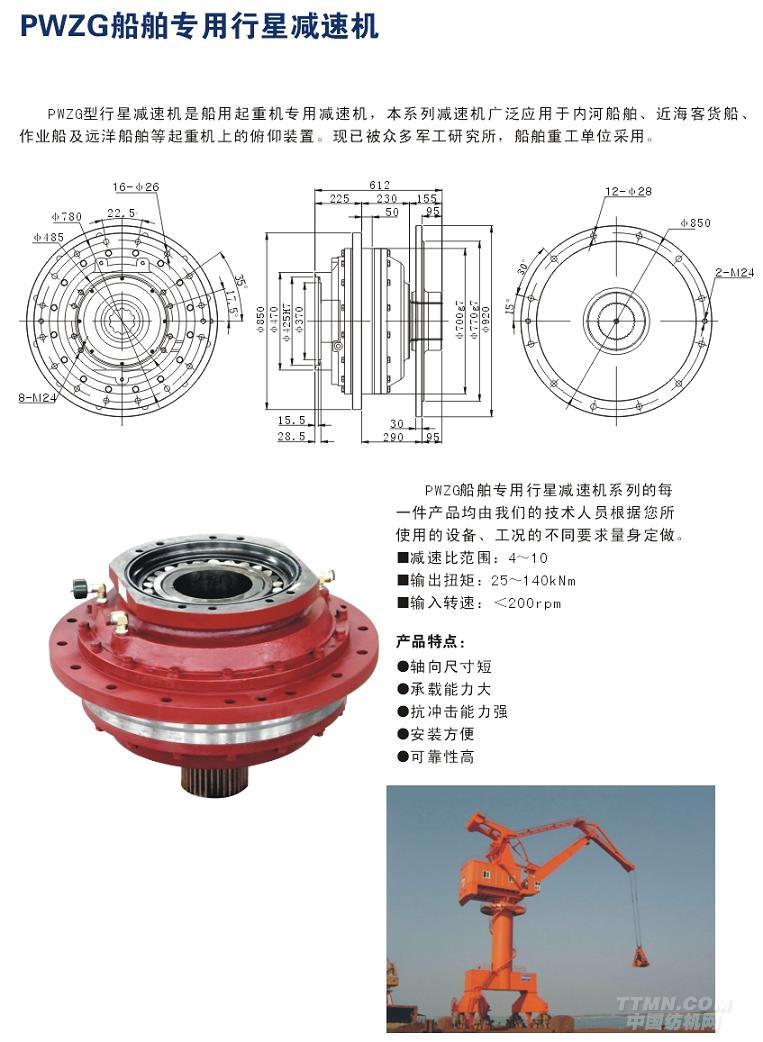 應用領域:本系列減速機廣泛應用于內河船舶、近海客貨船、作業船及遠洋船舶等起重機上的俯仰裝置。