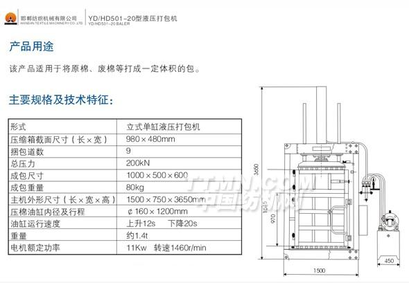 您所在的位置:紡機網 > 產品庫 > YD/HD501-20型液壓打包機