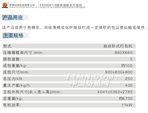 您所在的位置:紡機網 > 產品庫 > F9/HD2116型臥式打包機