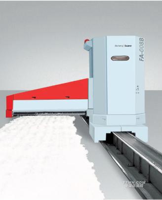 本機(jī)為往復(fù)式自動(dòng)抓棉機(jī),適用于抓取各種等級(jí)的原棉、棉型化纖及76mm以下的中長纖維,是開清棉聯(lián)合機(jī)組的第一道機(jī)臺(tái)。智能化的運(yùn)行小車,能對(duì)雙品種原棉分別實(shí)行精細(xì)抓棉,被抓取的棉束被氣流輸送至后方機(jī)臺(tái)作進(jìn)一步處理。