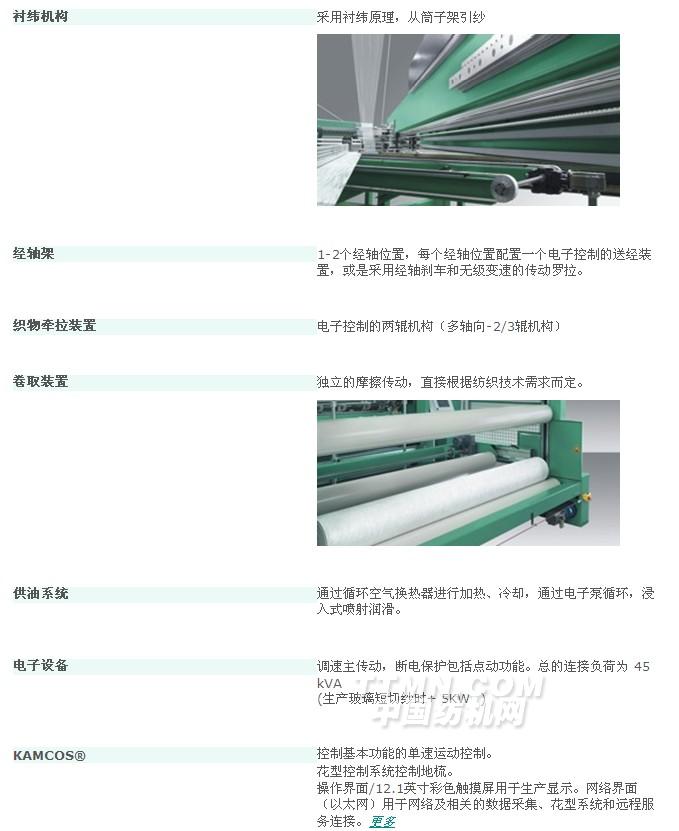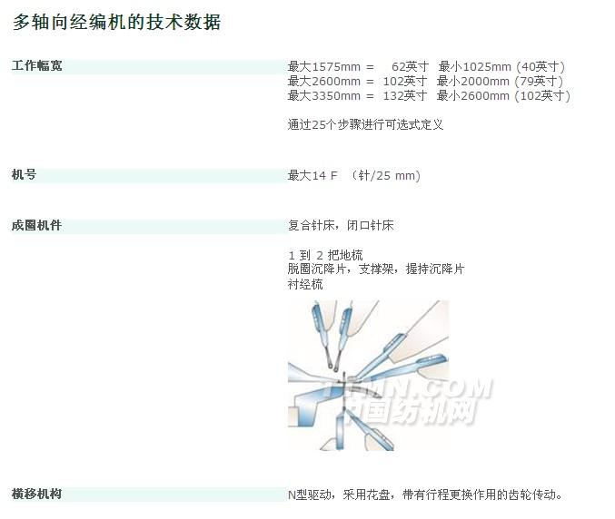 多軸向多層織物由一層或多層平行伸直排列、具有不同取向角度的紗線層組成,其表面結構通過線圈固定。纖維網、未加固的玻璃纖維短切紗、膜帶、泡沫或其他的材料均可以用來與紗線結合。理想的襯緯和層固定條件可以獲得很高的生產速度和優良而均一的織物。