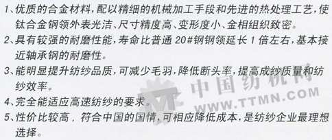 我公司是棉紡平面鋼領的專業化生產企業,是全球最大的鋼領生產、銷售企業。產品采用優質碳素鋼、鈦合金、軸承鋼、高精度軸承鋼等不同材質,表面處理有光面、鍍鉻、鍍膜、微晶、硫化等多種不同工藝的處理,能滿足客戶的不同使用要求。產品適用于環錠細紗機上紡棉、化纖、棉與化纖混紡的各種紗支的紗線。產品年銷售量達3500萬只左右,國內市場占有率達30%,居國內同類生產廠家之首,目前已擁有1000多個國內外棉紡、整機客戶,并出口東南亞、中東等地區,出口占總銷量的35%,占國內同類產品出口總量的90%。“航月牌”棉紡平面鋼領深受國內外用戶的廣泛贊譽,企業多年來榮獲省、市文明單位、科研型企業、資信AAA級等榮譽稱號。
