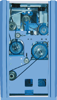 采用四電機(jī)分部傳動,替代傳統(tǒng)的錐輪變速機(jī)構(gòu)及換向、成形機(jī)構(gòu),運用電腦控制和變頻調(diào)速驅(qū)動等技術(shù)進(jìn)行高精度隨動控制系統(tǒng),使各電機(jī)達(dá)到最佳的同步控制,以最佳紡紗工藝進(jìn)行紡紗。