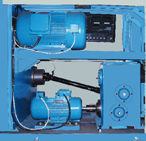 (二)傳動系統(tǒng):SXF1492粗紗機(jī)采用四個電機(jī)獨立傳動,分別傳動錠翼、羅拉、卷繞和龍筋升降,大大簡化了傳動機(jī)構(gòu)。取消了鐵炮粗紗機(jī)車頭傳動齒輪箱、捻度變換齒輪、成形齒輪、龍筋升降齒輪等。調(diào)整工藝方便。減少保全保養(yǎng)的工作量。