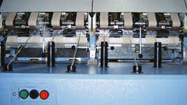 SXF1492型粗紗機(jī)采用多個高精度的旋轉(zhuǎn)編碼器與電腦組成實時檢測、反饋控制系統(tǒng),在整個紡紗過程中,按預(yù)置的數(shù)學(xué)模型自動控制紡紗張力。防開關(guān)車細(xì)節(jié)產(chǎn)生的控制系統(tǒng),有效的穩(wěn)定了紗線質(zhì)量。