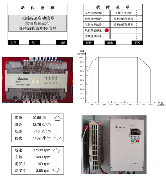 1.主機(jī)變頻驅(qū)動(dòng)時(shí),紡紗速度多點(diǎn)設(shè)置,降低大、小紗斷頭率。