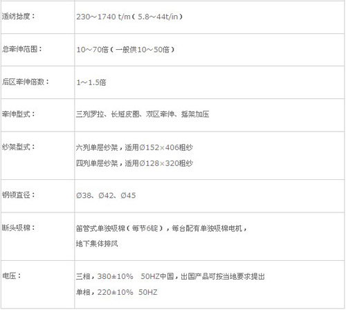 本機(jī)用于棉及棉型纖維的純紡或混紡的細(xì)紗工序。