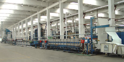 MT/SS100進布架→MTK107A堿槽裝置→MA/H572中固二輥軋車→M24A(I)直輥絲光機→MA/H572中固二輥軋車→MTK150繃布裝置→MA/H572中固二輥軋車→MA/H121E布鋏絲光機→MA/H573中固三輥軋車→HM511D直輥槽→MA/H572中固二輥軋車→M1541水洗機→MA/H572中固二輥軋車→M1541水洗機→(MA/H572中固二輥軋車→M1521水洗機)×4→MA/H572中固二輥軋車→M1517M水洗機→MA/H572中固二輥軋車→M1517水洗機→MA/H573中固三輥軋車→M1615B烘筒烘燥機→平幅落布
