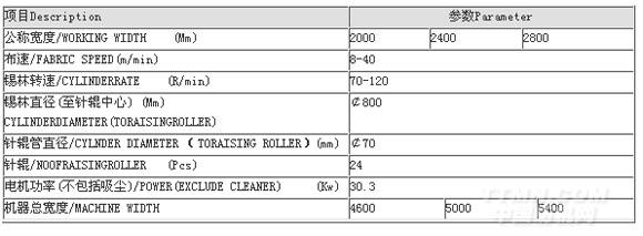 設置擴幅輥、烘布輥、靜電消除器等選用部件,用于不同織物的起毛。