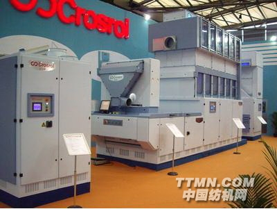 在ITMA ASIA + CITME 2008展會上,清花設(shè)備遭遇冷落,參展設(shè)備可謂鳳毛麟角。據(jù)筆者觀察,本屆展會上僅有經(jīng)緯紡機和上海太平洋克羅斯羅爾展出的清花設(shè)備引人注目。經(jīng)緯紡機僅僅展出了抓棉機、精開棉機和異纖清除設(shè)備,克羅斯羅爾展出的清梳設(shè)備相對完整,并且以其創(chuàng)新的設(shè)計理念成為本屆展覽會的清梳聯(lián)主角,引發(fā)了眾多紡紗技術(shù)專家的濃厚興趣!