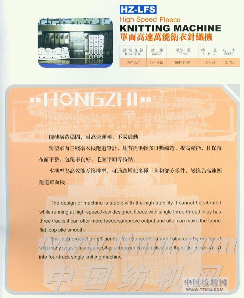 HZ-LFS單面超高速萬能衛衣針織機 -- 宏智(泉州)機械有限公司