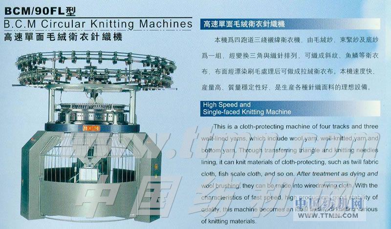 BCM/90FL型高速單面毛絨衛衣針織機 -- 臺灣榕煙臺關系企業