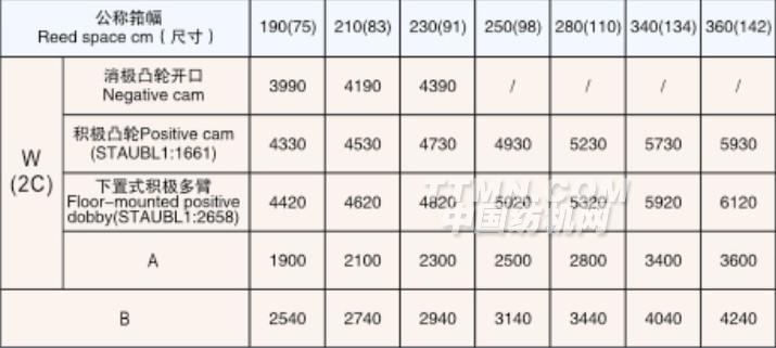 性能指標:公稱筘幅為190-360cm(可根據用戶需求生產相應的筘幅),上、下織軸盤片直徑φ800mm(或914mm)、主軸轉速400-750rpm(實際車速根據織物規格確定)、筘幅可調范圍0-800mm、適用織造長絲或短纖、卷布直徑550mm、上下織軸經紗雙伺服控制、電子多臂開口(16片)、電子卷取(機械卷取)、10.4"觸摸液晶顯示智能電腦控制。