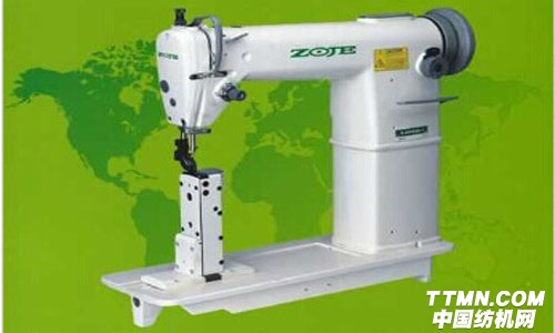 高頭厚料機采用滑桿排線、立式旋梭勾線,形成單線鎖式線,上下軸采用螺旋傘齒輪轉動、采用立柱式縫臺及滾輪壓腳,可方便地進行立曲縫制。適用于皮鞋、運動鞋皮包等類似物品的轉角縫紉。