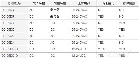 DL05系統PLC的I/O點數相同,為8如/6出,其外形尺寸也相同; 根據其I/O電氣特性的不同,目前可提供以下幾種型號的DL05PLC: