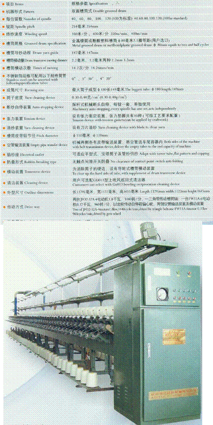 本機系用于將絞紗繞成寶塔形筒紗,供整經,并紗或針織等使用。