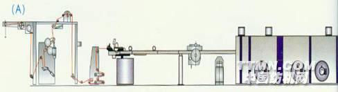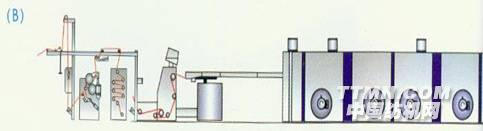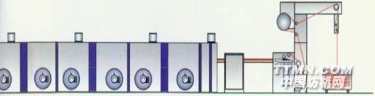 平幅進布→浸軋→烘筒烘干進布組合 平幅進布→浸軋→熱風烘干進布組合