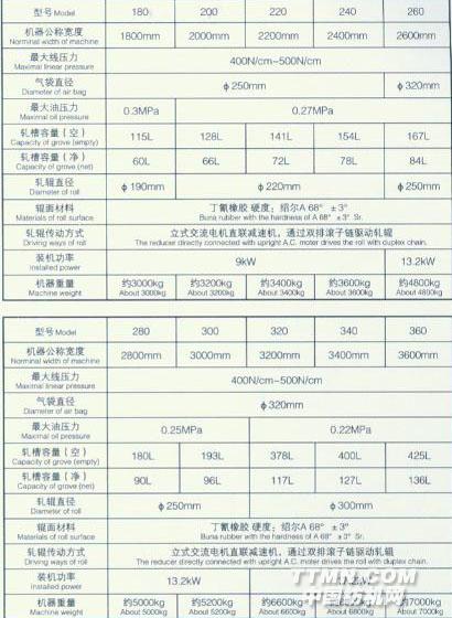 四、輥徑φ300系列 門(mén)幅3200mm 3400mm 3600mm