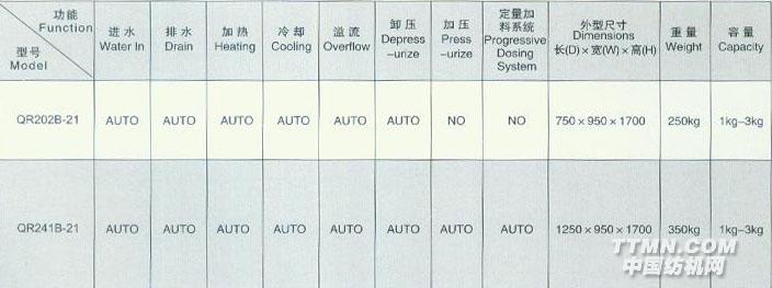 染缸和所有與染液接觸部分均采用優(yōu)質(zhì)高級(jí)不銹鋼制造。高效率新穎離心泵連接機(jī)械密封裝置,由變頻器(18.5KW以上可用),可無(wú)級(jí)控制流量。垂直式缸體,快鎖缸蓋帶平衡重錘裝置配氣缸開(kāi)關(guān)。缸蓋電氣連鎖裝置(QR241C-75以上缸蓋由重錘平衡開(kāi)關(guān))。自動(dòng)控制換向的平板式液流換向器。獨(dú)特高效外置管殼式熱交換器。主缸自動(dòng)加壓卸壓裝置(氣墊式)。循環(huán)液流冷凝器(全充滿式)。敞開(kāi)式加料桶及定量注料。高精度感應(yīng)的壓差式傳感器控制液位(氣墊式)。先進(jìn)的微電腦程序控制器。