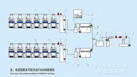 清梳聯主要流程三 (純棉環錠紡2萬錠 兩個品種)