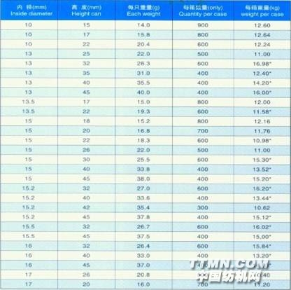 各種系列內徑和高度可根據廠家設備的需求來定制。