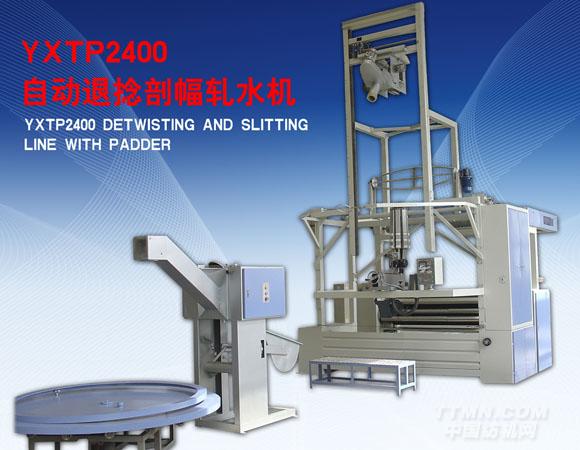 YXTP2400自動退捻剖幅軋水機將脫水、剖幅和展平三道工藝合為一體,在一臺機器上連續完成,替代離心脫水機和剖幅機??椢锵绕史僬蛊矫撍撍に嚥捎孟鹉z輥擠壓方式,不會產生褶皺印和細皺紋等瑕疵。