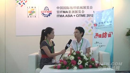 記者:觀眾朋友們,大家好!這里是2012ITMA 上海紡機展的展會現場。我是中國紡機網記者劉曉鈴,今天非常有幸采訪到江蘇海大印染機械有限公司的陳麗潔女士走進我們的演播廳,陳總您好。