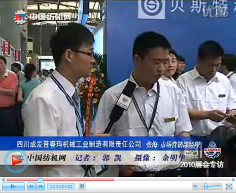 近日,四川成發普睿瑪機械工業制造有限責任公司一行參加了2010年中國國際紡織機械展暨ITMA亞洲展覽會,在展會現場,記者有幸采訪到了公司市場營銷部張海經理。據悉,這次展會成發普睿瑪展出了多款產品:粗紗氣動搖架、氣動V形牽伸搖架、氣動平面牽伸搖架、QVX型氣動V形牽伸裝置、細紗氣動搖架。