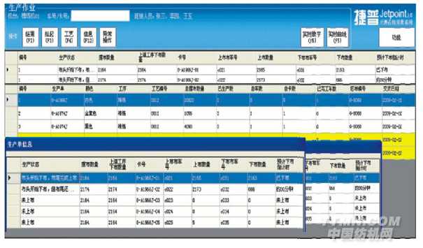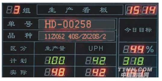 (1)車間LCD看板系統(tǒng)——滾動顯示訂單生產(chǎn)進(jìn)度、當(dāng)前車間的生產(chǎn)任務(wù)、產(chǎn)量匯總信息、車間布帳流轉(zhuǎn)信息等。
