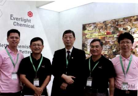 從左到右:色彩化學(銷售Ⅱ部)助理經理Eric Lin; 技術營銷和服務部主管Davis B.K.Lai; 色彩化學副總經理兼主管Bruce Chen; 色彩化學助理總經理Yao-Ming Wu; 以及噴墨化學實驗室經理Sam Chen.