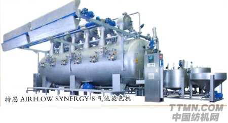 眾所周知,到目前為止氣流的低浴比仍未被取替。新一代的特恩AIRFLOW SYNERGY 8獨(dú)立供風(fēng)氣流染色機(jī),最新的研發(fā)更進(jìn)一步降低能源消耗.現(xiàn)每管設(shè)獨(dú)立風(fēng) 機(jī)因而降低耗電,其它氣流優(yōu)點(diǎn)保持不變,短流程、低水耗、高重現(xiàn)性及織物運(yùn)行流暢等。值得一提的是,特恩SYN8獨(dú)立供風(fēng)氣流染色機(jī)曾榮“2013香港工商業(yè)獎(jiǎng)-機(jī)器與機(jī)械工具設(shè)計(jì)獎(jiǎng)”