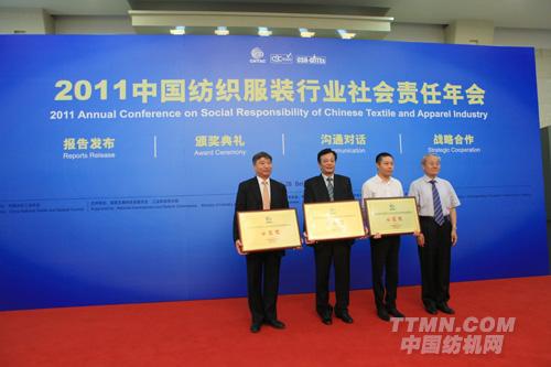 2011年6月27日—28日,由中國紡織工業(yè)協(xié)會主辦的2011中國紡織服裝行業(yè)社會責(zé)任年會在北京隆重舉行。“產(chǎn)業(yè)轉(zhuǎn)移背景下的社會責(zé)任:產(chǎn)業(yè)的梯度轉(zhuǎn)移和國內(nèi)市場的崛起對企業(yè)社會責(zé)任的影響“、”社會責(zé)任體系融合與中國企業(yè)社會責(zé)任的發(fā)展“專題論壇同期舉行。會議期間發(fā)布了”2010-2011中國紡織服裝行業(yè)社會責(zé)任報(bào)告“,經(jīng)緯紡機(jī)等16家紡織服裝企業(yè)同時(shí)發(fā)布社會責(zé)任年報(bào)。此次是經(jīng)緯紡機(jī)連續(xù)第三年發(fā)布社會責(zé)任報(bào)告,憑借詳盡的信息披露和連年高質(zhì)量的報(bào)告,經(jīng)緯紡機(jī)獲得了”2011年度中國紡織服裝行業(yè)社會責(zé)任信息披露實(shí)踐示范獎“的殊榮。