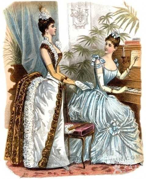 在蓬蓬裙的色彩方面,古羅馬時代最流行的是白色和紫色,紫色象征高貴,白色代表純潔、正直。中世紀時由于哥特式教堂中彩色玻璃窗被裝飾得輝煌燦爛,因此服飾上也充滿宗教氣氛的色彩,藍色被視為"天堂色彩"。文藝復興以后,隨著服飾奢華程度的升級,明亮的色彩受到人們的歡迎。法國人特別喜歡丁香色和薔薇色,也很迷戀含蓄的天藍和圣潔的白色。西班牙人崇尚高雅的玫瑰紅和銀灰色調。在英國,黑色被認為是神秘、高貴的顏色。迷人的黑色襯著白種女性白皙的膚色,非常炫目。