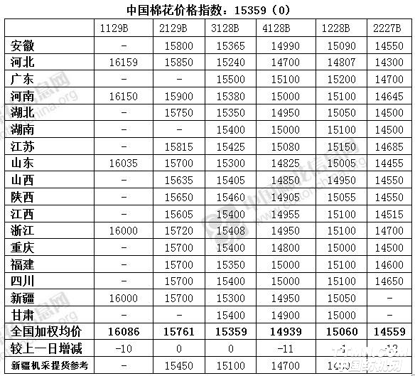 中國棉花價格指數CC Index及到廠價(10.24)