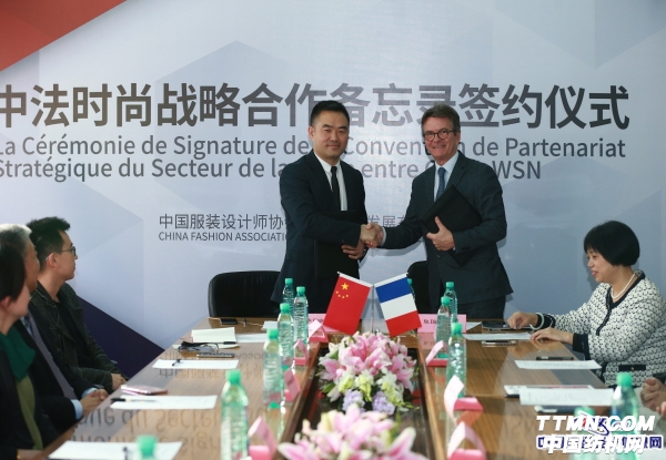 CTEI網訊 作為全球時尚產業格局中新興與經典力量的主要代表,中國與法國正在尋求時尚領域的全方位多維度的深度合作。3月30日下午,中國服裝設計師協會主席張慶輝先生與法國 WSN發展公司(WSN DEVELOPPEMENT)總經理Etienne COCHET先生在北京正式簽署了具有重大戰略意義的合作備忘錄,以進一步促進中國與法國在時裝及配飾界的深度交流與合作;同時雙方還將在專業展會、時尚人才培養與交流、設計大賽等多個領域展開創意性合作。