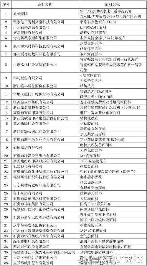 2017“中國印染行業優秀面料”獲獎名單 二等獎