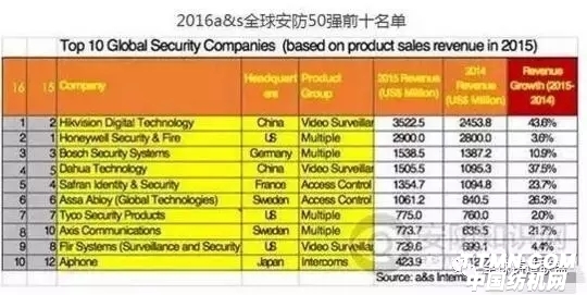 2001年,中國成立了一家叫海康威視的企業(yè),僅僅6年后的2007年,這家中國企業(yè)就進入了評選的全球安防50強。記住2007年,??低暡艅倓傔M入世界前50,那么到八年后的2015年,海康進步到什么水平了?