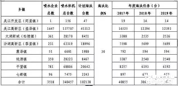 當(dāng)天下午,吳江區(qū)召開整治動(dòng)員大會(huì),明確吳江各地禁止新增任何噴水織機(jī),包括已經(jīng)批準(zhǔn)、還未投入使用的。并確保到2019年年底,中水回收率達(dá)到100%;噴水織機(jī)總數(shù)從34.2萬臺(tái)減至23.8萬臺(tái)。